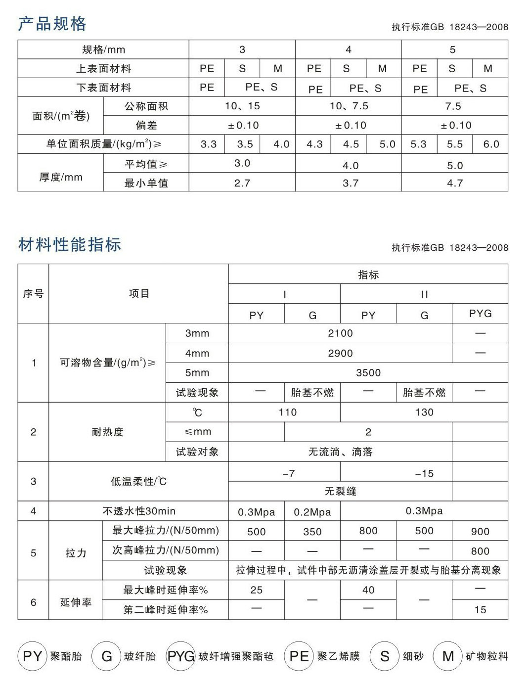 聚酯长丝胎与APP改性沥青两种高性能的组合,性能极佳,可形成高强度防水层,抵抗压能力强,具有拉伸强度高、抗疲劳、抗穿刺性能好、超强耐腐蚀、耐老化性能,使用寿命长等特点。