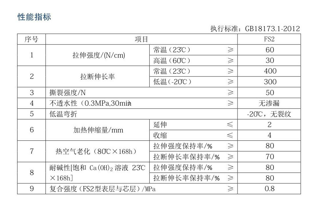 该产品抗拉强度高,抗渗能力强,耐高低温性能好,摩擦系数大,易粘贴,无毒,应用范围广,使用寿命长,重量轻,稳定性好,可在潮湿基面上施工(无明水),无毒无污染、环保、施工方便、价格低,且具有刚柔合一的防水功能。